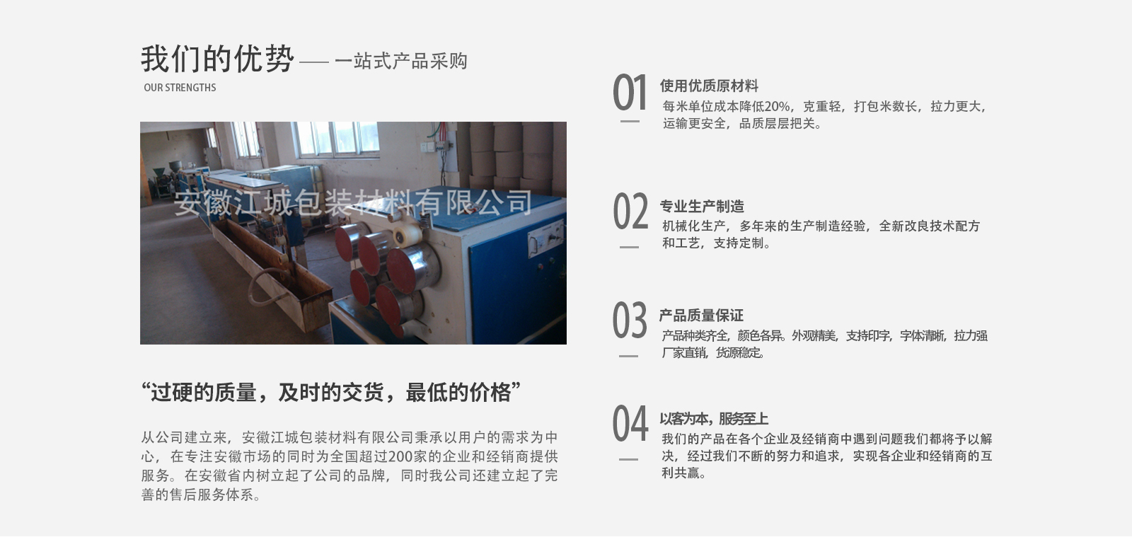 安徽江城包裝材料有限公司成立于2008年,注冊于2010年,公司總部設立在安徽蕪湖,是安徽省內專業(yè)生產與銷售打包帶、透明膠帶的公司之一。公司主要效勞于大中小企業(yè),并大力開發(fā)省內經銷商。公司以“過硬的質量,及時的交貨,低的價格”,為企業(yè)的立身之本。希望用我們的不懈努力,帶給我們客戶大的效益。從公司建立來,安徽江城包裝材料有限公司秉承以用戶的需求為中心,在專注安徽市場的同時為全國超過200家的企業(yè)和經銷商提供服務,“過硬的質量,及時的交貨,低的價格”博得了縱多的企業(yè)和經銷商的好評,在安徽省內逐步樹立起了公司的品牌,同時我公司還建立起了完善的售后服務體系。為我們的產品在各個企業(yè)及經銷商中遇到的問題予以解決,經過我們不斷的努力和追求,實現各企業(yè)和經銷商的互利共贏。